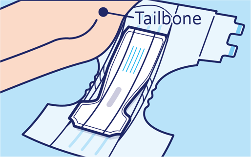 Have the person lie back on top of the diaper, raise their body up while fitting the urine pad, and spread out the front of the urine pad.